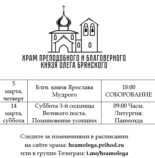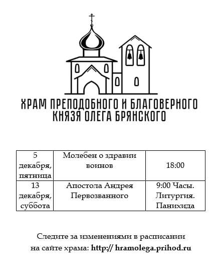 Расписание богослужений.